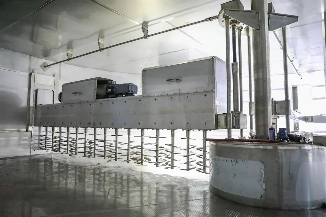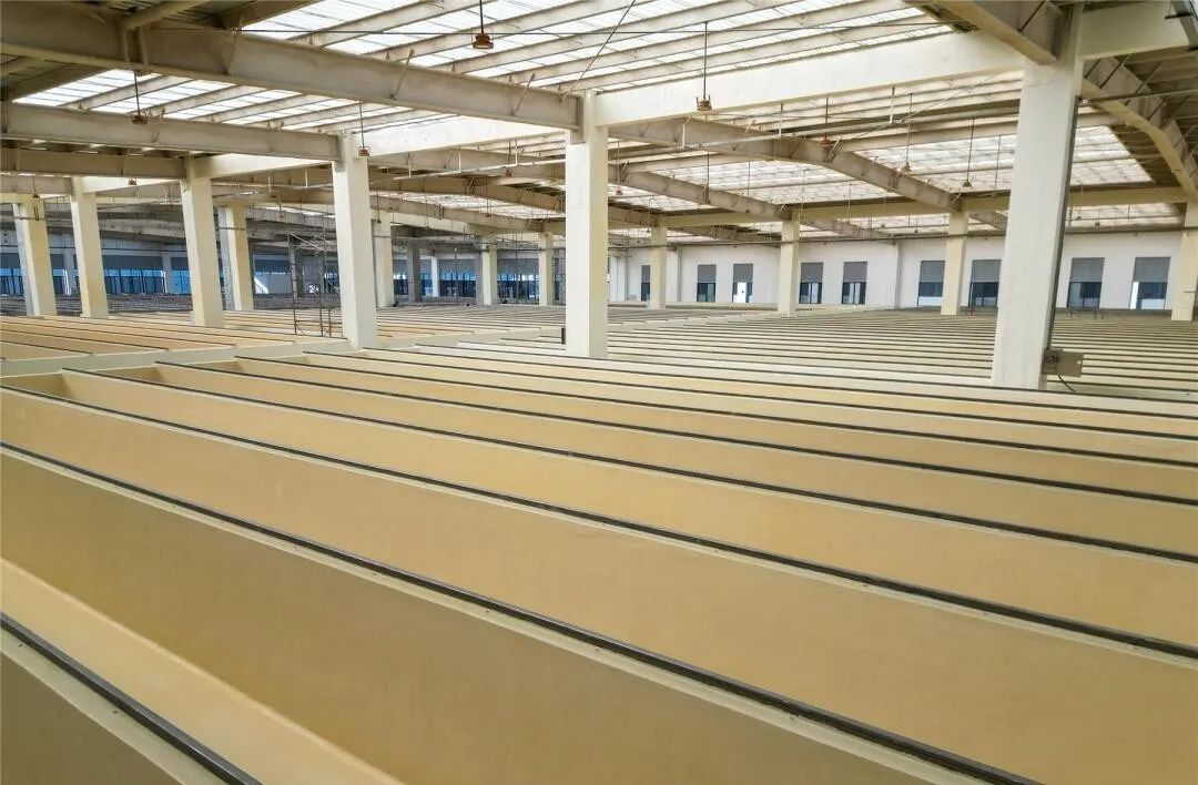 俯瞰豆瓣醬生產(chǎn)線大樓,最上層的陽光曬場清晰可見。走進陽光曬場內部,130多個曬池如蜂巢般整齊排列,工人正穿梭其間,修建原料輸送管道。原料輸送管道是整個大樓運行的“大動脈”,由圓盤制曲和發(fā)酵車間制作的甜瓣子、椒胚半成品,都要通過這條管道輸送到陽光曬場,完成“翻曬生香”的工序,再經(jīng)灌裝后,才會變成老百姓餐桌上常見的豆瓣醬。
