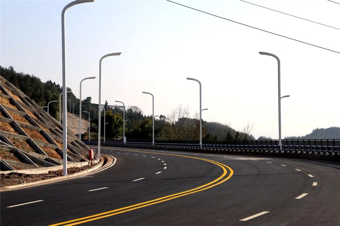 “目前已經完成道路的瀝青路面、標識標線、路燈施工,整個工程完成了99%,目前正在對路面邊坡進行景觀美化,打造景觀平臺,提升道路顏值?!笨h人和投資集團工程建設部副部長楚成發介紹。