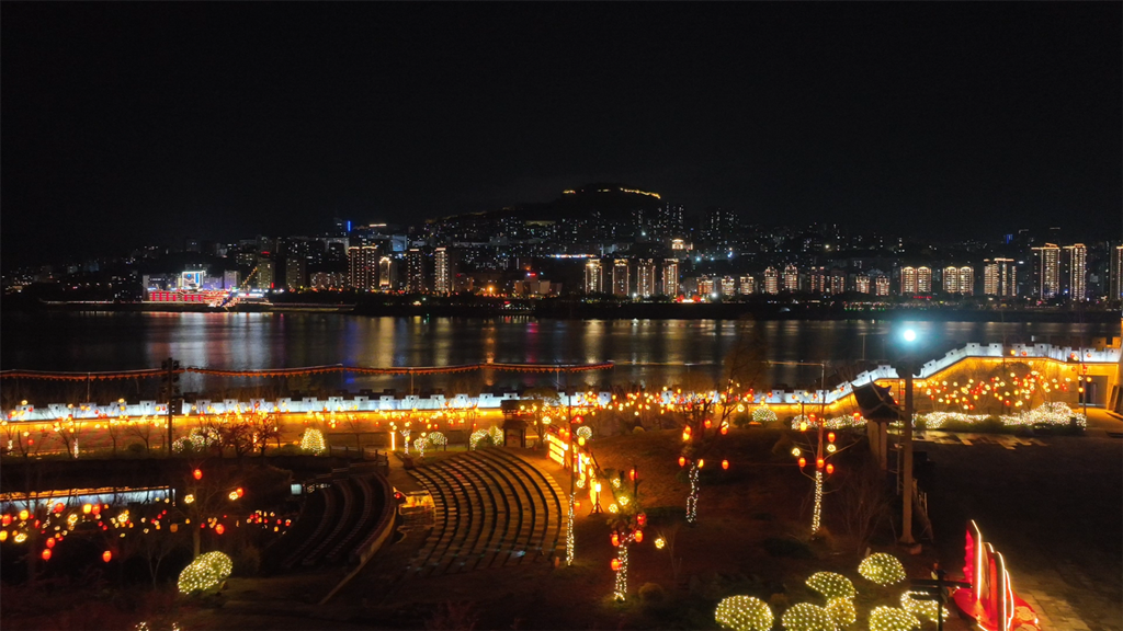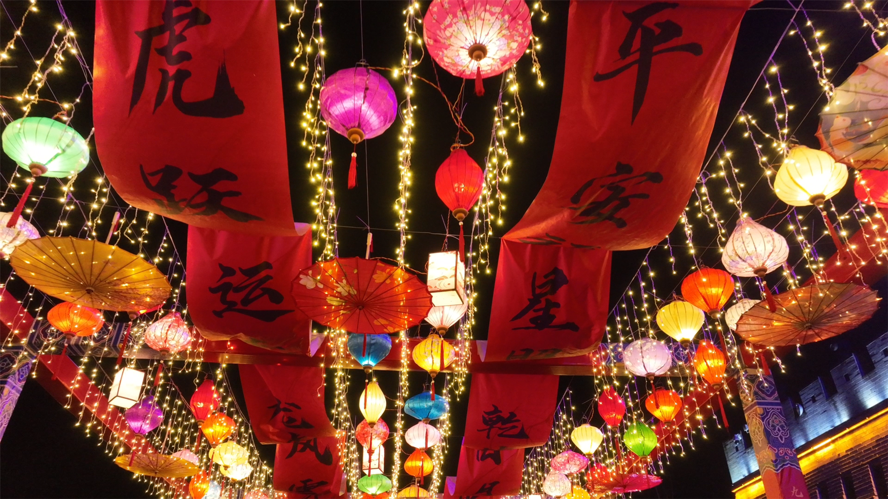 夜幕降臨,城市的夜逐漸變得絢麗多姿、風情萬種。從夜空俯瞰,萬家燈火與一個個充滿國潮風的小燈籠和閃亮的五角星交相輝映,在體現(xiàn)傳統(tǒng)文化魅力的同時,也烘托出濃濃的年味。而穿行其間,猶如置身于華燈如晝的畫卷之中。