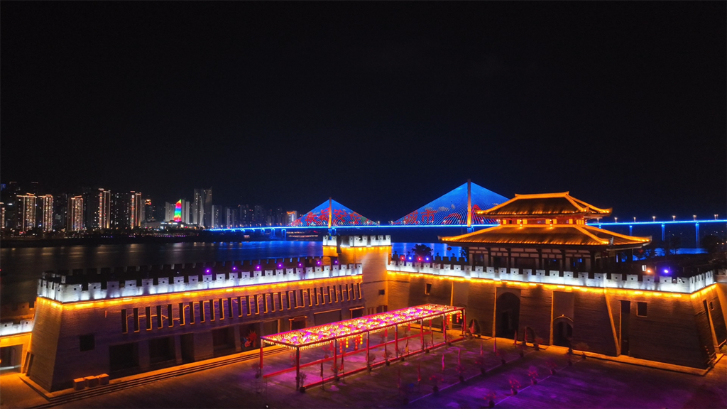 在位于長江之畔的三國印巷,寓意“紅紅火火”,長30米、寬6米的燈籠長廊,宛如一幅精美的畫卷在夜色中徐徐展開。以燈帶、燈串、紅燈籠為主要布置元素,魚燈籠、詩詞燈點綴的古城燈景,流光溢彩、絢麗奪目,猶如一條氣勢恢宏的“巨龍”坐臥于夜色下的長江之畔。待到2月10日(初一)零點,用2024盞燈籠串聯(lián)起的長約1000米的“萬里長江第一燈籠長龍”也將正式亮燈。