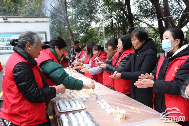 在活動現場另一邊,志愿者們正在做湯圓。和面、拌餡,一搓、一捏、一按、一團,不一會兒一塊塊白白的糯米面在大家的巧手中團成一個圓球,寓意廉潔、團圓和睦的湯圓新鮮出爐。“今天的節目豐富多彩,志愿者們親手包的湯圓非常好吃,讓我們大家在一起度過了一個熱鬧溫馨的元宵節。”市民劉興貽邊吃湯圓,邊告訴記者。
