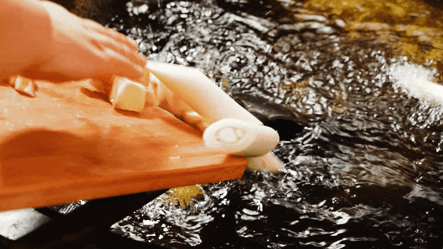 這道秘制尊品牛肉面,牛肉哨子是重頭戲。選擇黃牛后腿肉作為五香牛肉原料,清洗干凈后切成掌心大小塊狀,多次清洗浸泡,除去血水。加入生姜大蔥和料酒焯水去除腥味后便可進入鹵煮環(huán)節(jié)。牛肉塊翻滾入鍋,加入八角、桂皮、香葉、花椒、白芷等香料,再加入秘制鹵料和鹽、老抽、白糖等作料,大火煮開后轉(zhuǎn)小火慢慢熬煮一個多小時,中間不斷攪拌防止牛肉粘鍋。