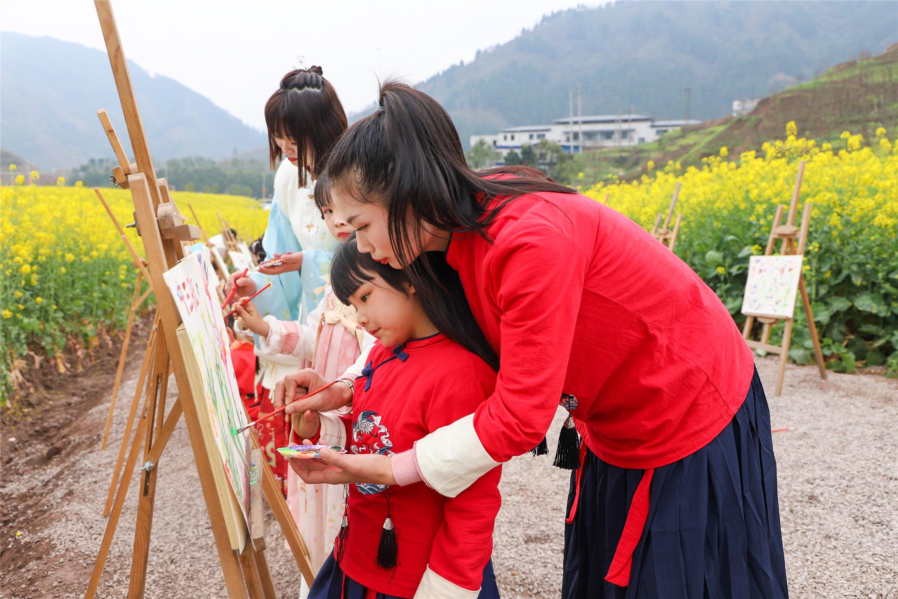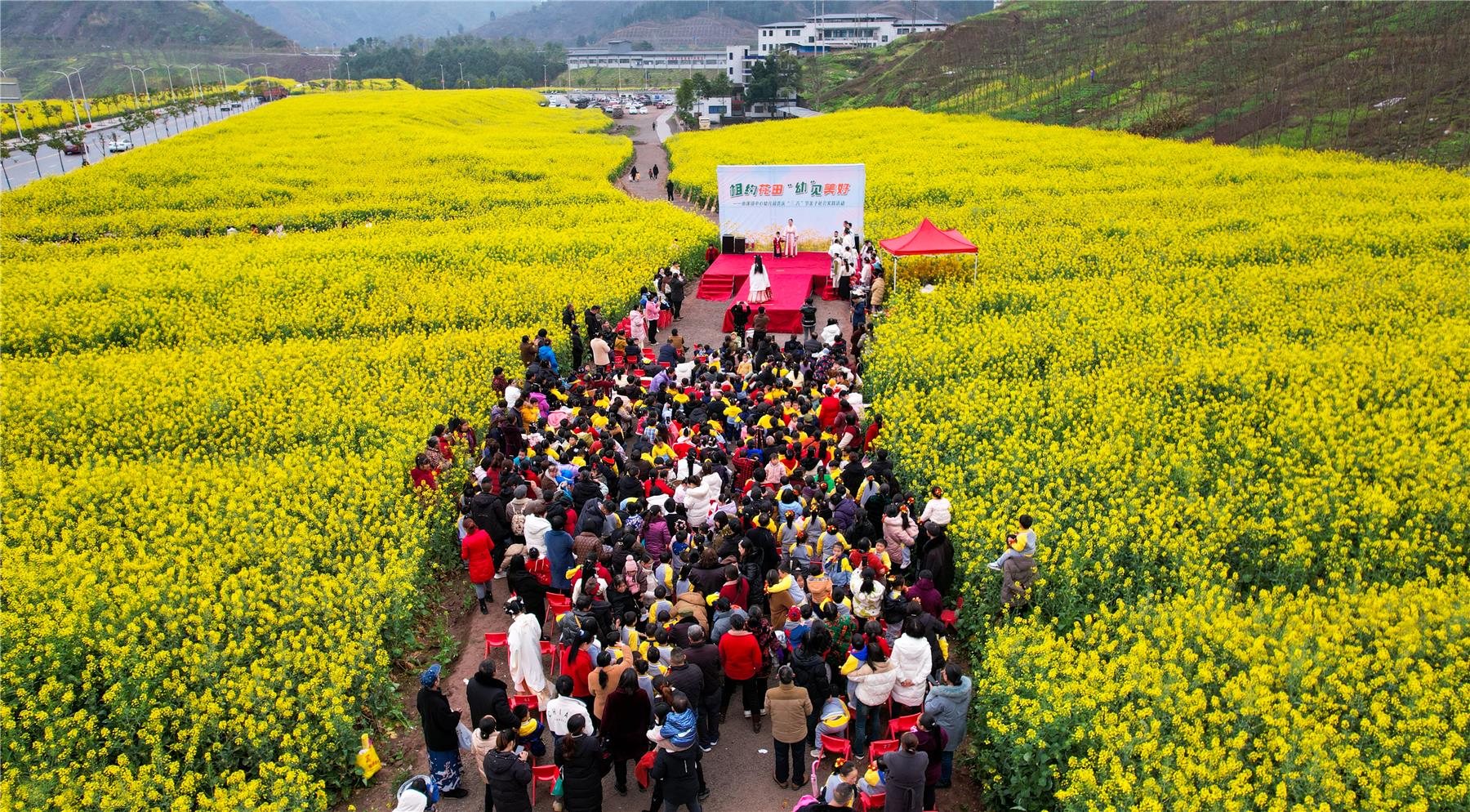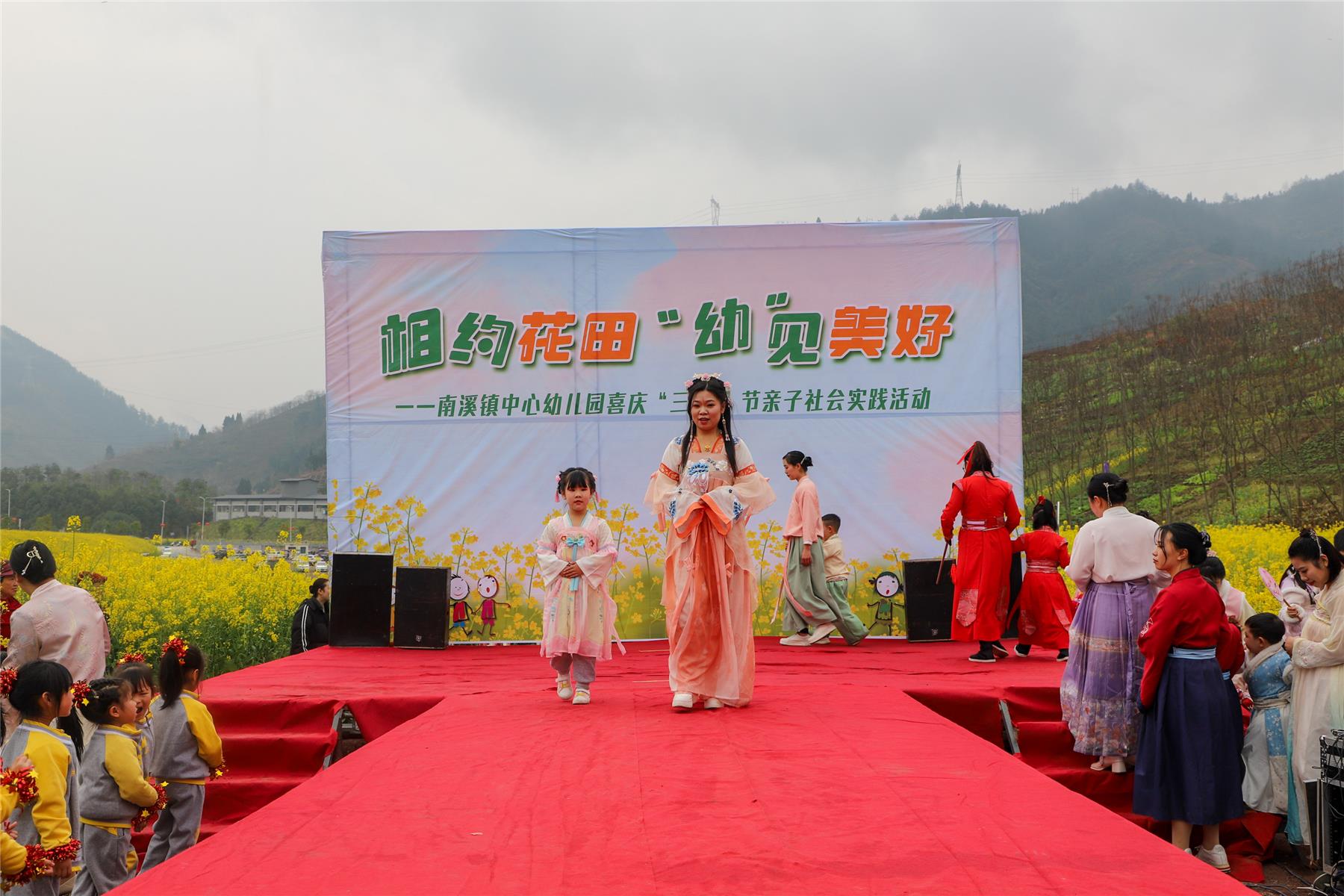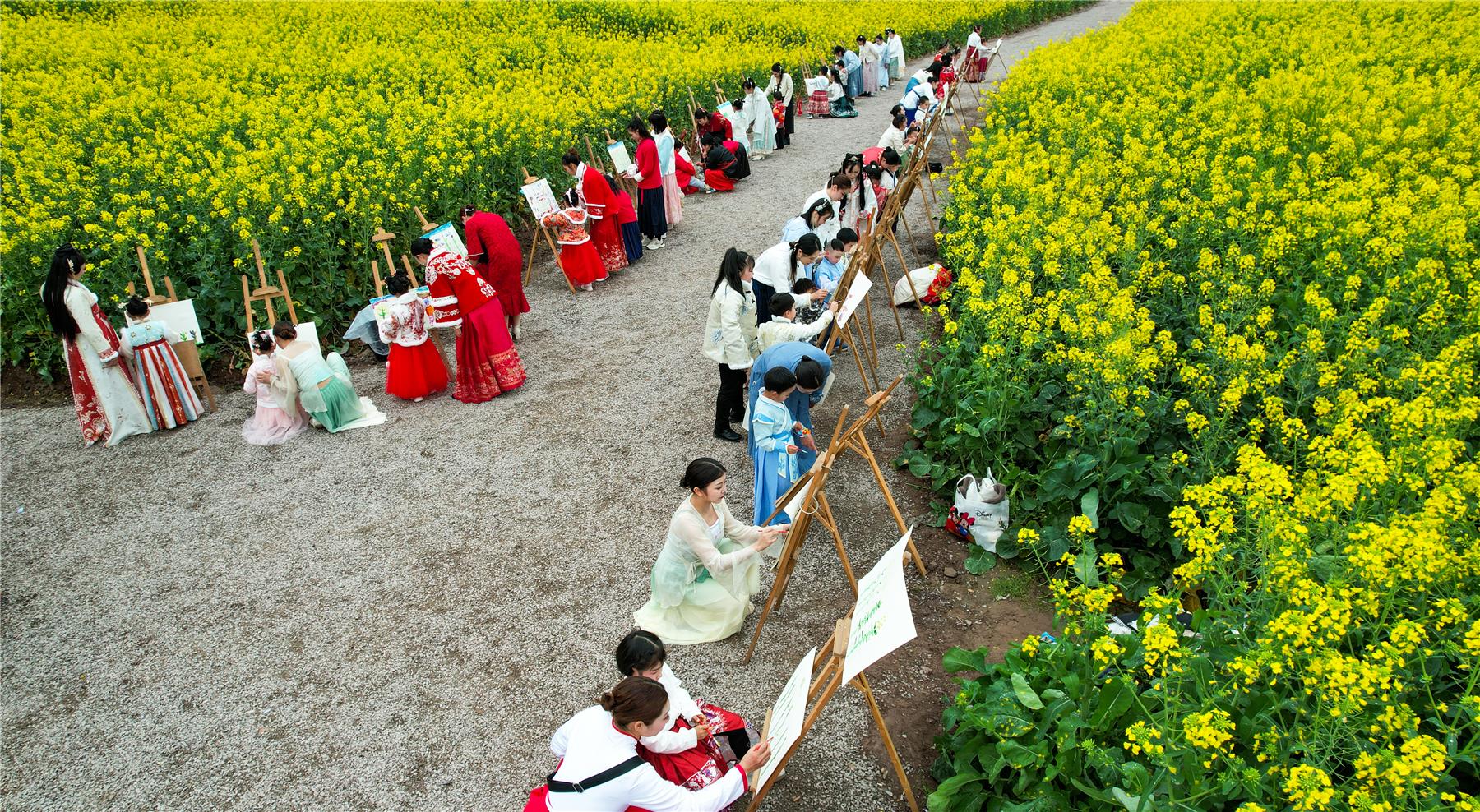 花海映麗人,人與花媲美。除了女教師們用花海漢服秀的方式過婦女節外,云陽縣南溪鎮中心幼兒園的師生們還邀請女性家長相約花田開展了一場親子漢服秀、親子繪畫游等社會實踐活動。在寓教于樂中歡度婦女節,既增進了親子感情,又讓小朋友們感受了大自然的獨特魅力。