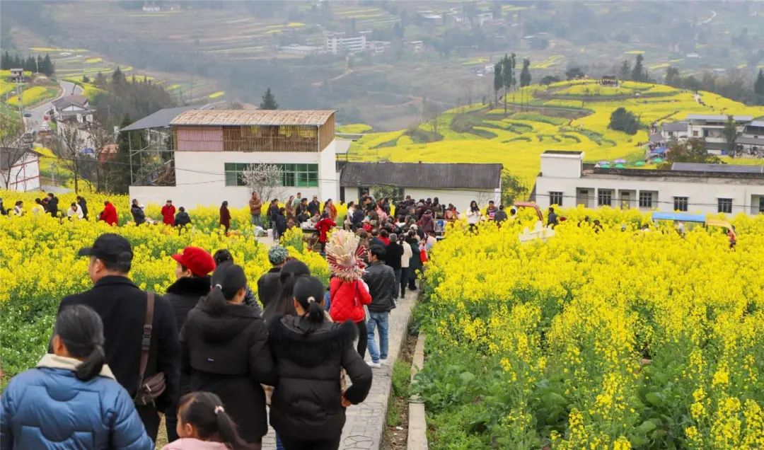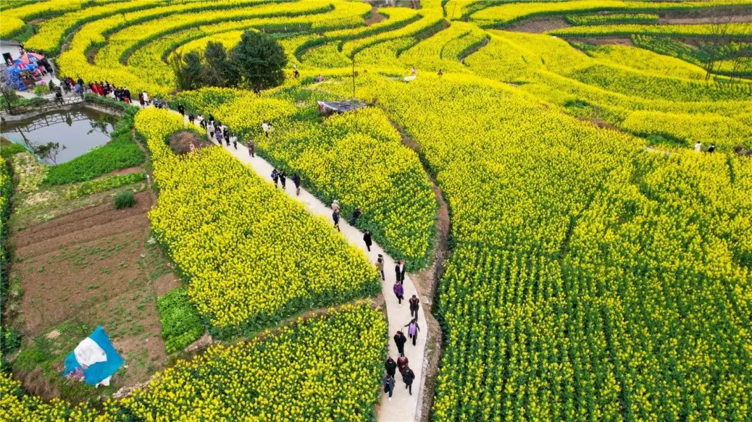 “這段時(shí)間油菜花開了,每天來玩的游客很多,我們的生意也很好。”村民魯?shù)切惆炎约曳N的農(nóng)產(chǎn)品搬到花田,靠著油菜花,附近的村民們也吃上了旅游飯。