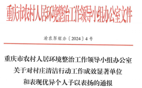 為重慶市村莊清潔行動工作表現(xiàn)優(yōu)異個人