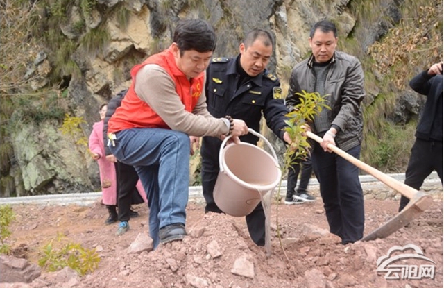植樹現場,大家干勁十足,統一協作,密切配合,挖土、種植、澆水,志愿者們充分發揮團隊合作精神,栽下的是美好展望,留下的是綠水青山。