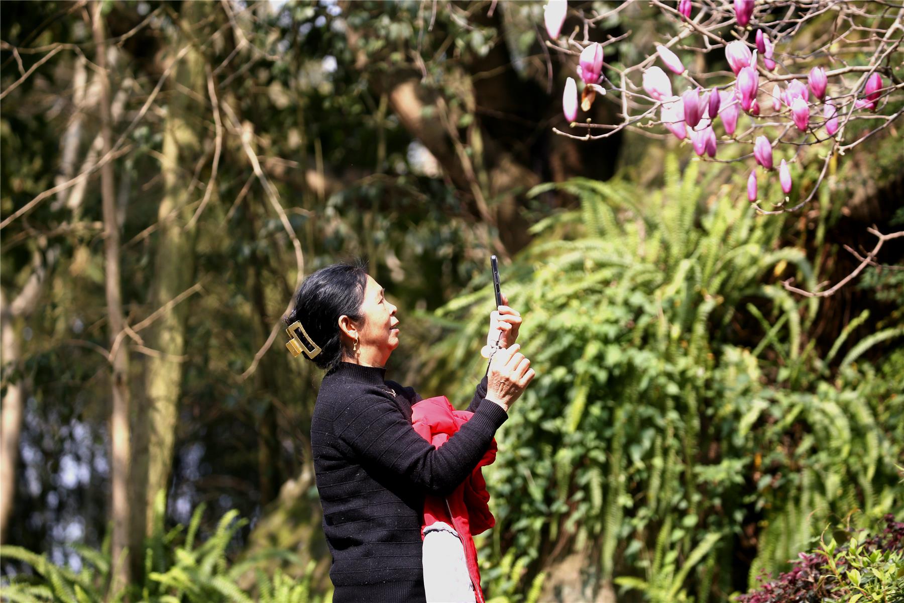 “玉蘭花開得格外鮮艷,顏色也非常漂亮,趁今天天氣好上來看看,讓人心情很舒暢。”市民孫女士說。