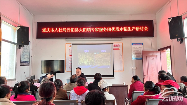 云陽網訊(記者 陳慧)一年之計在于春,一年好景在春耕。3月12日,市人社局專家服務團到大陽鎮大樹村開展優質稻生產研討,強化春耕生產技術支撐,農技專干以及種糧大戶現場“聽講”,為春耕做足“功課”。