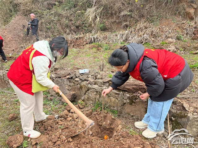 植樹(shù)現(xiàn)場(chǎng),彩旗飄揚(yáng),大家熱情高漲、干勁十足,三五個(gè)人自由搭組,分工合作,互相配合,有的揮鍬鏟土、有的扶樹(shù)填土……經(jīng)過(guò)大家的通力協(xié)作,一棵棵新栽種的李子樹(shù)苗迎風(fēng)挺立,呈現(xiàn)一片新綠和希望。