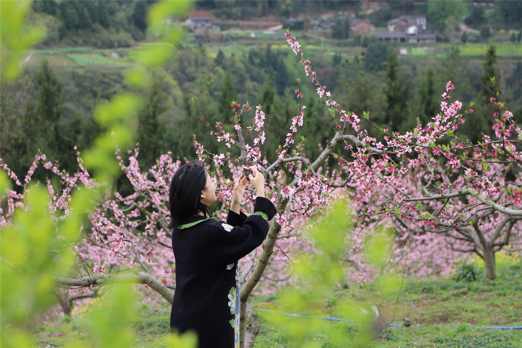“這一片桃花開得特別好,就像粉色的云朵。旁邊又有池塘,又有鴨子嬉戲,頗有‘竹外桃花三兩枝,春江水暖鴨先知’的意境。”游客陳怡欣說。