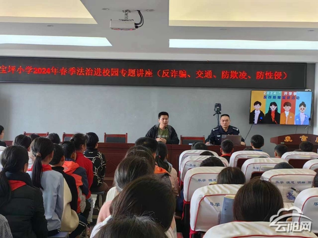 云陽網訊(通訊員 吳方莉)3月27日下午,寶坪小學特邀寶坪派出所負責人、學校法治副校長為該校師生作“以‘法’為名、護我前行”主題法治講座。