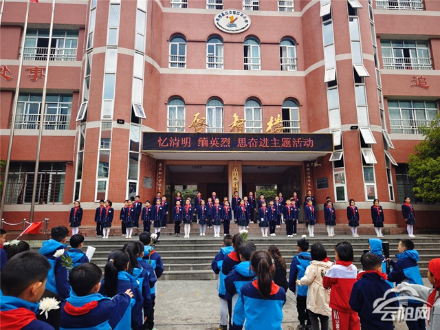 主題升旗儀式上,學校相關負責人以《清明祭英烈,豐碑礪青春》為題,給全校學生上了一堂生動的主題大思政課,勉勵孩子們從革命先烈們的光輝足跡中汲取奮進力量,爭做有理想、敢擔當、能吃苦、肯奮斗的新時代少年先鋒。