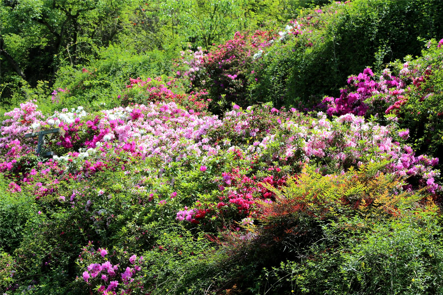 走進梨園路,便與漫山春色撞個滿懷,仿若置身杜鵑花海之中。放眼望去,各色杜鵑擠擠挨挨地開著,紅的熱烈、白的清新、粉的淡雅、紫的浪漫......一團團、一簇簇,絢麗多彩,如云似霞,宛若大自然打翻了調色盤。
