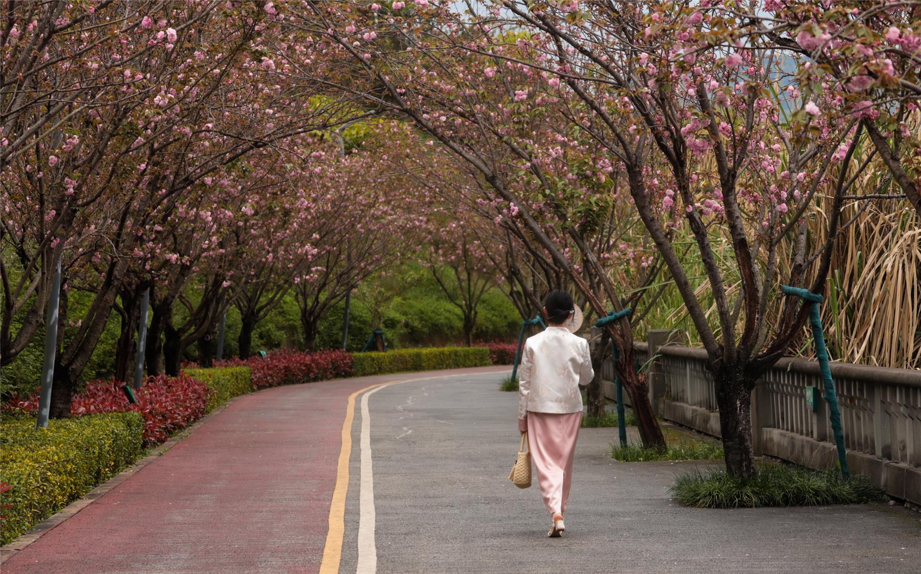 “現(xiàn)在櫻花長廊的櫻花開了,我特意穿上新中式的服裝和朋友過來拍照,感受春日浪漫?!庇慰屠钣晟罕硎?,如今環(huán)湖綠道已經(jīng)成為她們一天的公園、一年的公園和一生的公園。