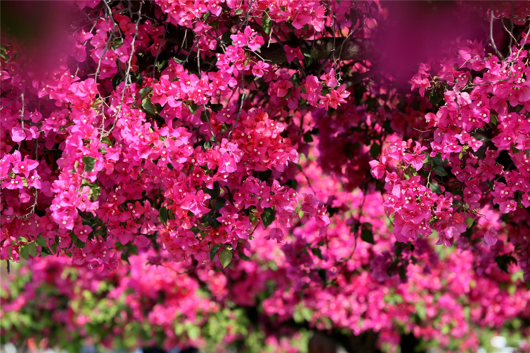據悉,三角梅似花非花,又稱葉子花、葉子梅、紙花、九重葛等,是紫茉莉科,花色亮麗,主要有紅色、紫色等,花期較長,觀賞價值很高。我縣共栽植三角梅一萬多株,目前是觀賞的最佳時期,對于喜愛賞花、攝影的朋友們來說,現在也正是拍照打卡的好時機。