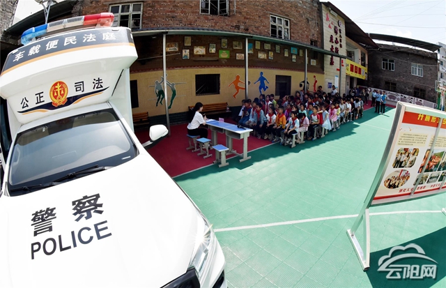 縣人民法院還利用車載便民法庭組織普安小學學生開展“模擬法庭”活動,學生擔任審判長、法警、書記員等不同的角色,完整再現庭審過程,從鮮活的案例中學到法律知識、感受到法律的威嚴。庭審中學生聲情并茂,旁聽師生也聚精會神,“沉浸式”體驗模擬庭審現場。