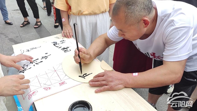 現場設置了分組游戲區和手工體驗區,游戲區內有粽子冰壺、釣粽子、手腳并用和蒙眼貼五毒等趣味游戲,每個游戲都巧妙地融入了端午節的傳統元素,讓參與者在歡樂中感受節日氛圍。手工體驗區則提供了書法團扇DIY的機會,居民們在這里親手制作屬于自己的團扇,將書法藝術與端午節的傳統風俗相結合,體驗中華文化的魅力。