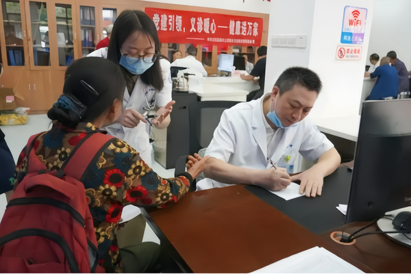 義診現(xiàn)場(chǎng),醫(yī)護(hù)人員為群眾測(cè)量血壓、血糖,并進(jìn)行健康檢查,提供專業(yè)的醫(yī)療建議。