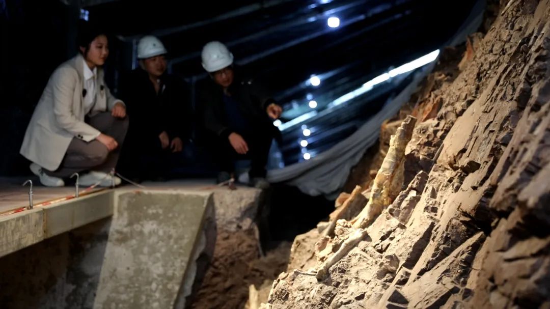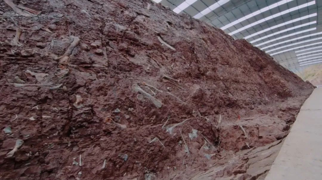 “朐忍渝州龍”化石所在的普安恐龍化石墻
