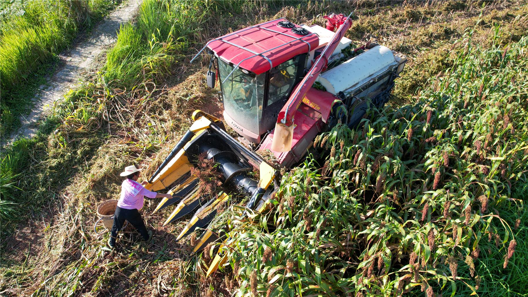 得益于高標準農田打造,目前棗樹村土地宜機化率達60%,為高粱生產機械化作業、規?;a創造了有利條件??粗诘乩飦砘卮┧蟮氖崭顧C,種植大戶向曉陽贊嘆不已,深感農業機械化發展帶來的便利。“按照傳統的人工收割高粱,每畝需要3個人工,一年要支付勞務費5萬元左右?,F在從機播到機收都是與農機專業社合作,每畝能夠為我節省人工成本最低300元,收割效率也提高60%。”向曉陽表示,今年高粱收成不錯,他種植的200多畝高粱從播種到收割再到烘干,實現了全程機械化。