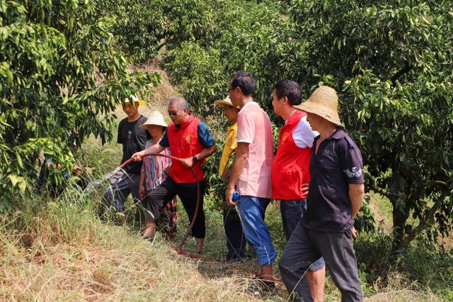 ▲農技人員指導果農通過農藝抗旱與工程抗旱雙管齊下,防止高溫干旱對柑橘生長造成不利影響。通訊員 譚啟云 攝