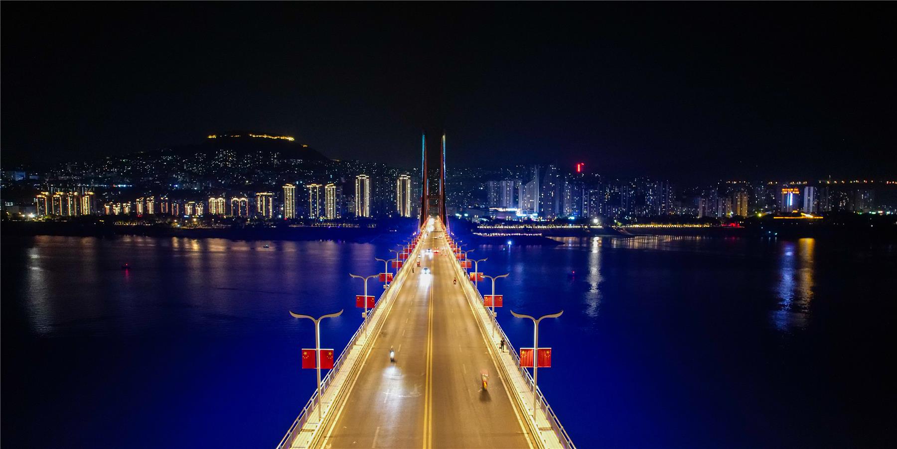 “國慶期間,我們安裝了上萬余盞景觀燈具,讓整個長江大橋成為巨型顯示屏。”縣市政設施管理所副所長曾勇介紹,國慶燈飾專題動畫綜合不同主題和內容進行投影顯示,使燈光秀藝術與橋梁藝術相融合,彰顯云陽的獨特夜景魅力。