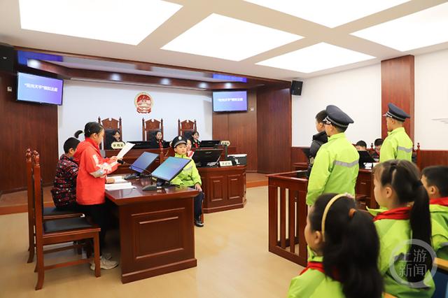 “車載便民法庭”功能啟動觀摩環(huán)節(jié),幼兒園的娃娃們對“車載便民法庭”非常感興趣。