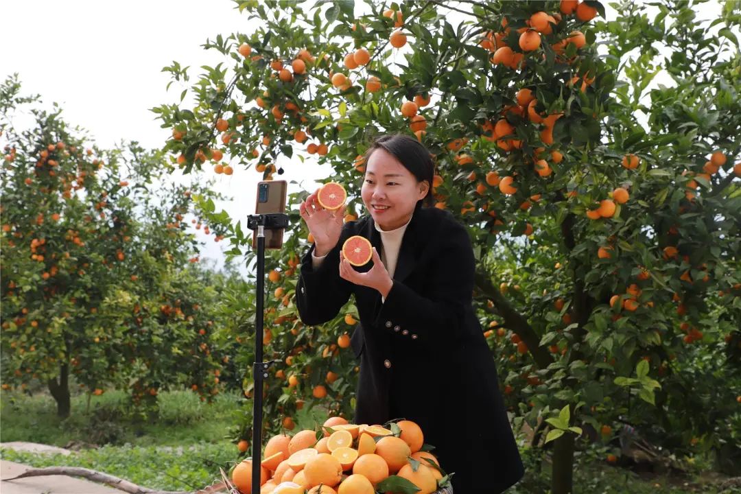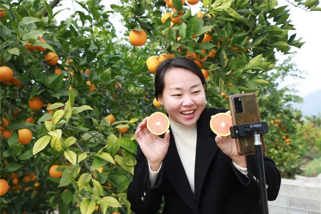 “家人們,這是我們云陽的紅橙,果大飽滿、汁水充足,喜歡吃的家人們可以點擊下面的小黃車下單!”初次見到柳井蘭,她正穿梭在柑橘地里,向觀看直播的網友介紹云陽紅橙的品質、口感。