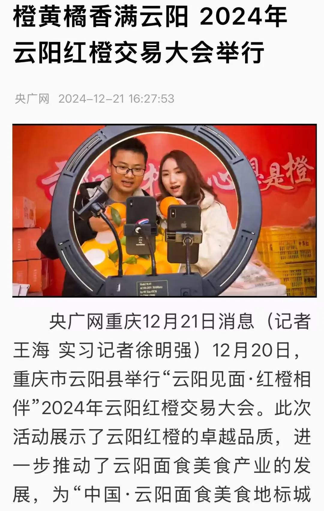 讓云陽紅橙的美名遠揚