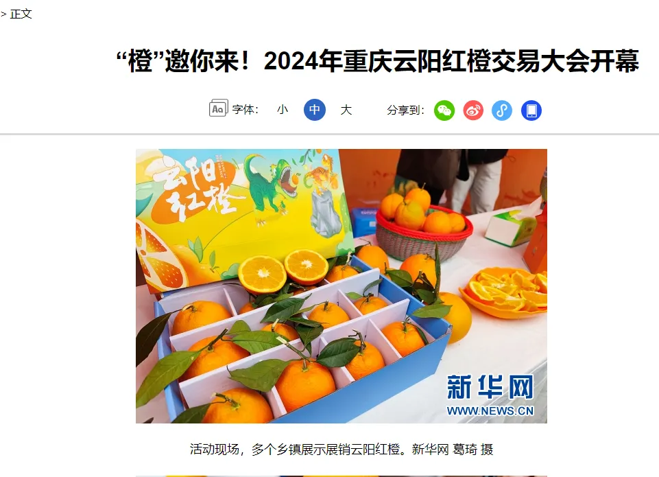 展示了云陽紅橙的卓越品質