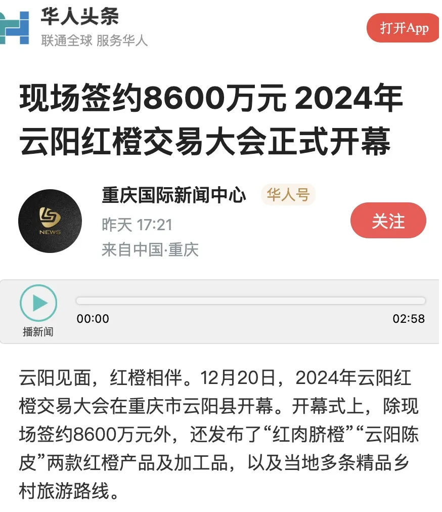 快來感受云陽紅橙的獨特魅力
