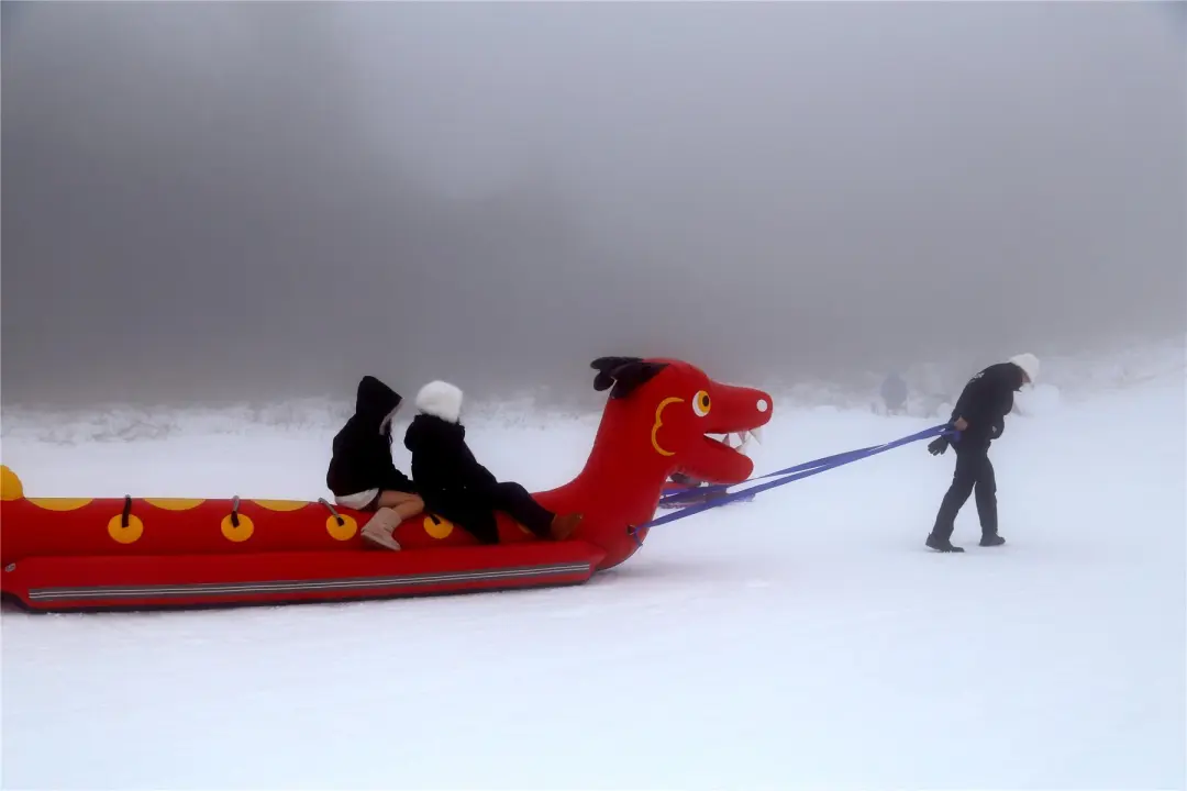從萬州趕過來的游客饒艷霞與朋友們在雪地里盡情撒歡兒,她開心地說道:“自駕過來一到兩個小時就能體驗雪上龍舟、摩托等項目,大人和小孩都可以一起玩,體驗感直接拉滿!”