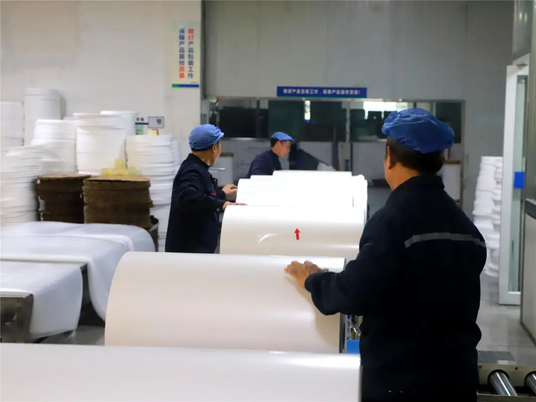 初見陳先懂時,他正在公司薄膜生產車間查看設備中控、抽檢生產記錄。面對國內外復雜多變的經濟形勢和行業內日益激烈的競爭,陳先懂深知,唯有創新,方能破局。在他的帶領下,金田塑業有限公司毅然決然地加大了科研投入,2024年全年科研費用投入達七千多萬元。這筆大額投入,不僅是企業對市場需求變化的敏銳捕捉,更是對產品附加值提升和搶占市場先機的前瞻布局。在他的精心策劃下,金田塑業的產品線從傳統的食品藥品包裝成功拓展至日化行業和定制消費產品領域,實現了從單一到多元、從低端到高端的跨越。