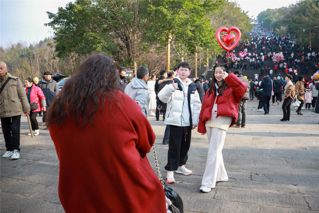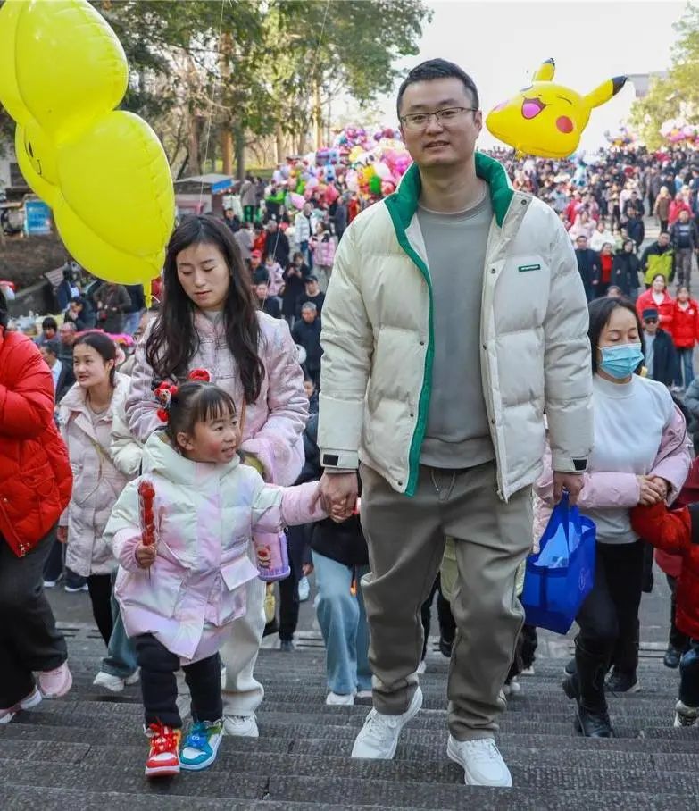 人們扶老攜幼,踏著石階步步登高