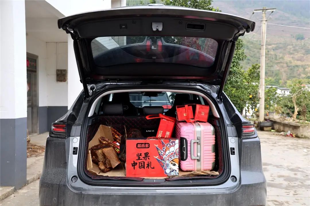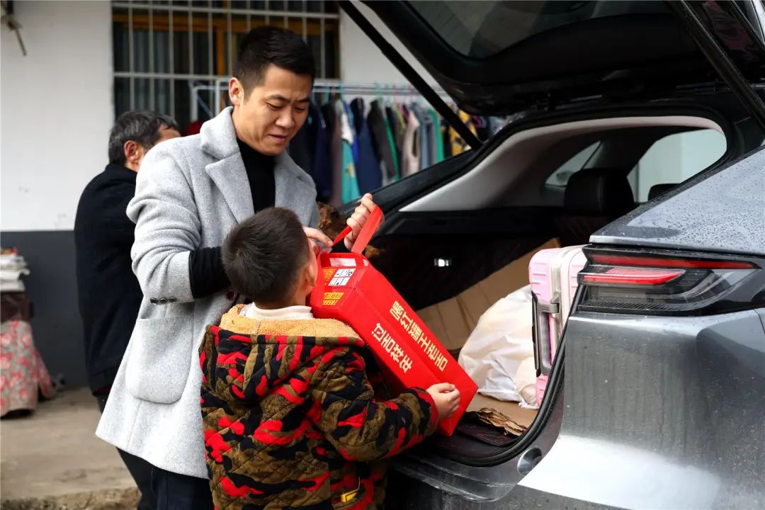 將父親精心準備的臘肉、牛奶等提到車邊了