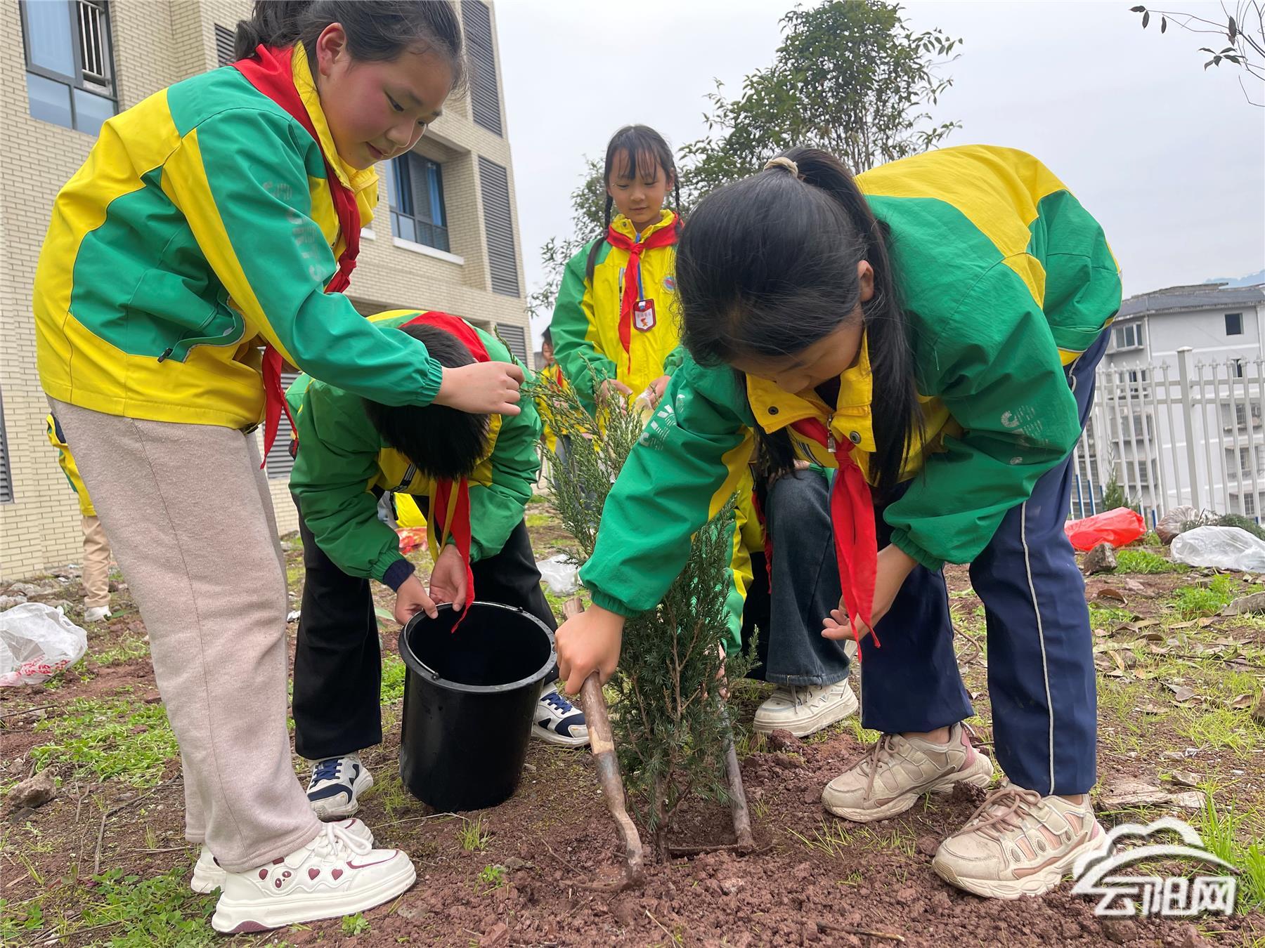 活動當(dāng)日,孩子們熱情高漲,早早抵達(dá)現(xiàn)場。大家手持植樹工具,分工明確,配合默契。有的揮鍬鏟土,一鍬一鍬為樹苗打造穩(wěn)固根基;有的小心翼翼扶正樹苗,確保其筆直挺立;還有的提水澆灌,讓樹苗在滋潤中開啟生命旅程。現(xiàn)場氣氛熱烈,大家干勁十足,歡聲笑語回蕩在植樹場地的每一個角落。