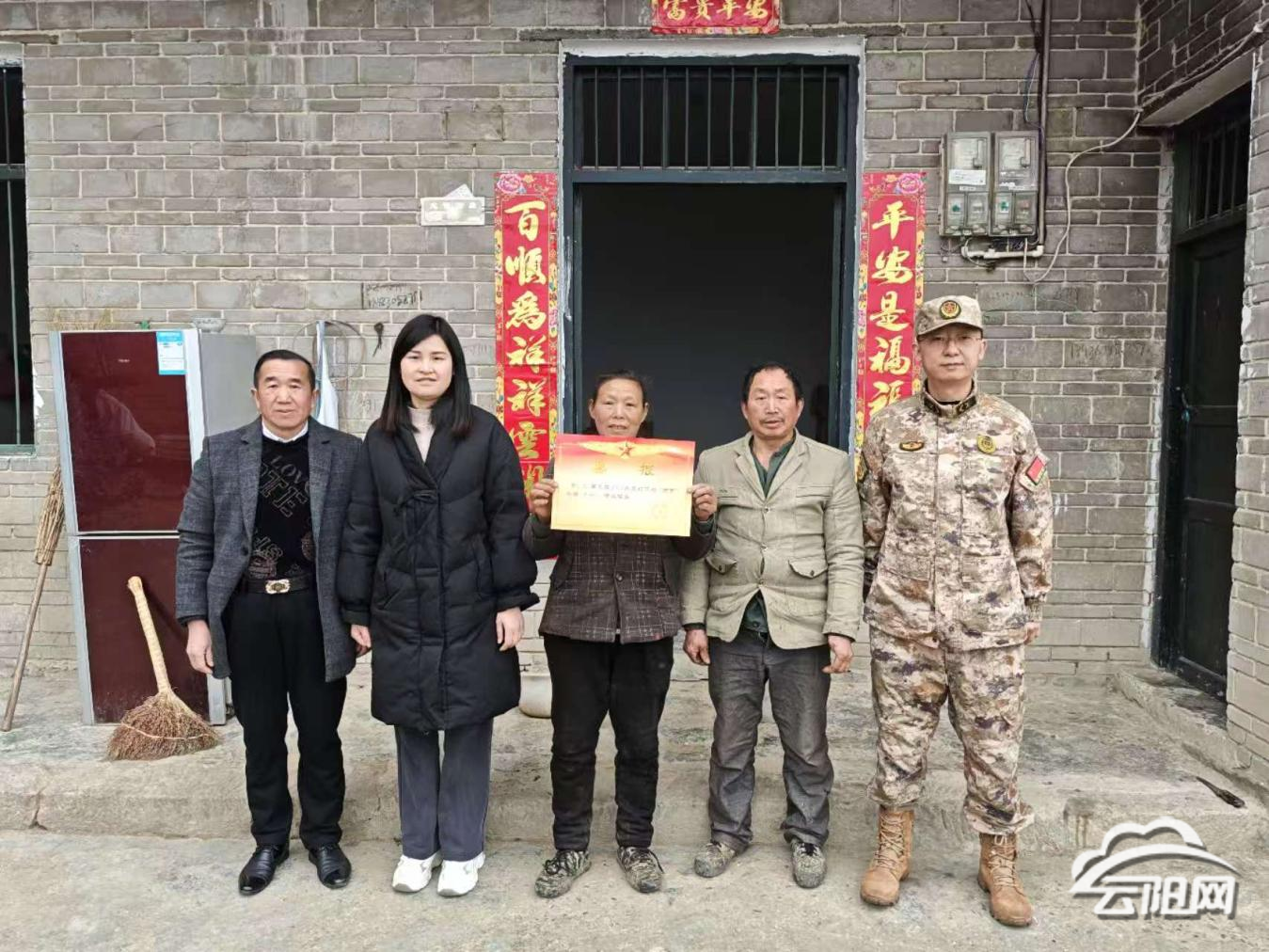 云陽網(wǎng)訊(通訊員 張航)近日,棲霞鎮(zhèn)組為轄區(qū)內(nèi)獲得“四有”優(yōu)秀士兵稱號的現(xiàn)役軍人解詩武、羅洪家屬送去喜報,將黨和政府的關(guān)懷與溫暖送到他們家中。