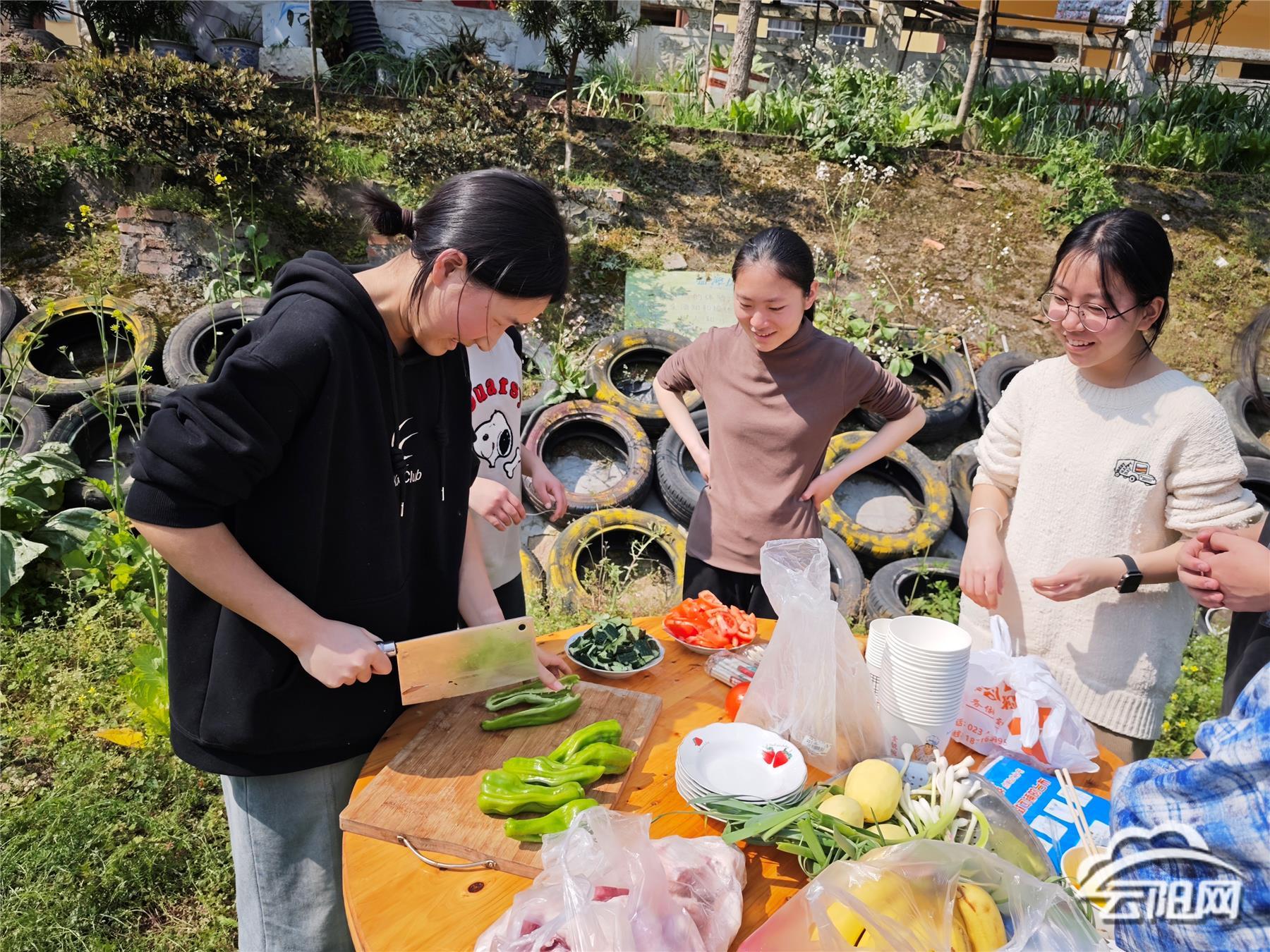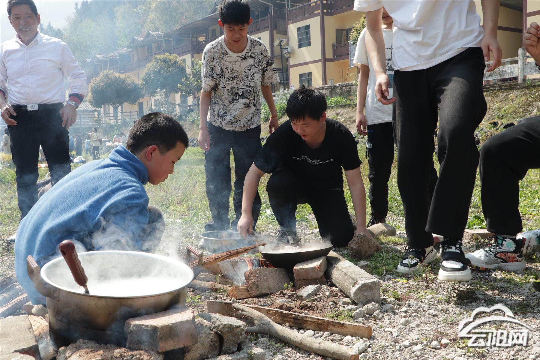 抵達目的地后,同學們迅速展開行動,分工協作,拾柴生火,洗菜切配,掌勺烹飪。不一會兒,炊煙裊裊間,一道道美味佳肴出鍋,師生家長圍坐一堂,共享親手烹制的“鄉味”美食,田間地頭滿是歡聲笑語。