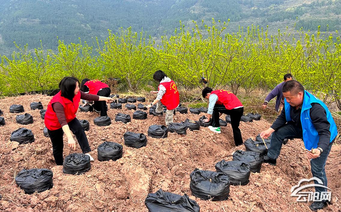 云陽網訊(通訊員 劉小軍)3月27日,在普安鄉佛手村,一群身穿紅馬甲的志愿者,穿梭在田間地頭,幫助村民栽種葛根苗,用實際行動助力當地春耕生產。