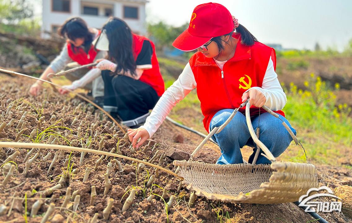 當天上午,志愿者們早早就抵達葛根種植基地。在農戶的悉心指導下,志愿者們迅速掌握了葛根種植的要點與技巧,大家擼起袖子,分組行動。有的揮鍬翻土,有的搬運種苗,有的進行栽種和澆水,每個環節都銜接緊密、有條不紊,現場氣氛熱烈,志愿者們熱情高漲、干勁十足,經過志愿者與農戶一整天的努力,撂荒地徹底換上“新顏”,新種植的葛根苗在土地上“安家落戶”。