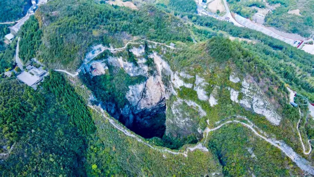 身旁便是直徑超300米的巨大天坑