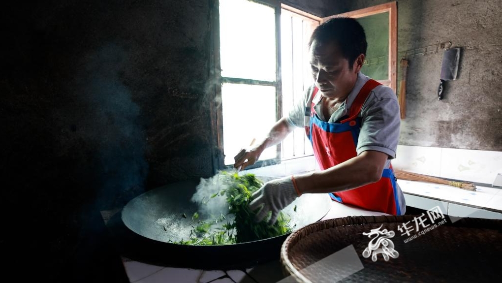 村民用傳統技藝制茶。華龍網記者 李燊 攝