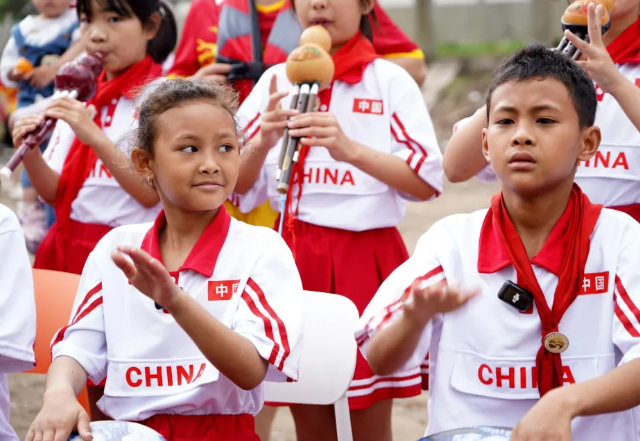 葫蘆絲方陣與中埃塞混血兒童張中華、張艷帶領的非洲鼓隊同臺演奏