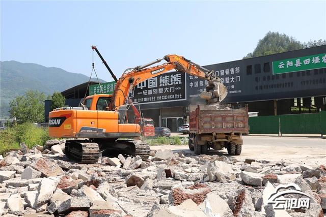 在田埡村2組觀音橋橋頭,一臺大型挖掘機揮舞著長臂,正對一處違規(guī)建筑開展拆除工作。隨著機械的轟鳴聲,違規(guī)建筑逐漸瓦解。后勤保障人員及時清理現(xiàn)場垃圾和雜物,確保周邊環(huán)境整潔。整個拆違過程嚴格按照法律法規(guī)和操作規(guī)程進行,做到了依法拆除、文明拆除。