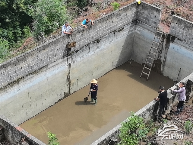 清洗行動展開前,村“兩委”做足“功課”——不僅提前發布停水通知,確保村民吃水無憂,更請來技術員現場指導,制定科學高效的操作流程。行動當日,隨著抽水泵轟鳴啟動,池水逐漸退去,厚厚的淤泥與沉積物顯露出來。大家毫不猶豫,換上雨靴、手持鐵鍬、掃帚與高壓水槍,分組輪番上陣。干部們躬身鏟除頑固淤泥,村民們緊隨其后仔細沖刷池壁,彼此默契協作,汗水浸透衣背,泥漿濺上褲腳,忙碌身影間傳遞著無聲的默契與責任擔當。技術員全程指導,確保每個角落都清潔到位、不留死角。經過近3個小時的連續奮戰,水池終于煥然一新,清冽水源重新注入,映照出眾人疲憊卻欣慰的笑容。