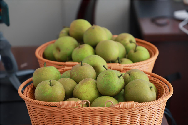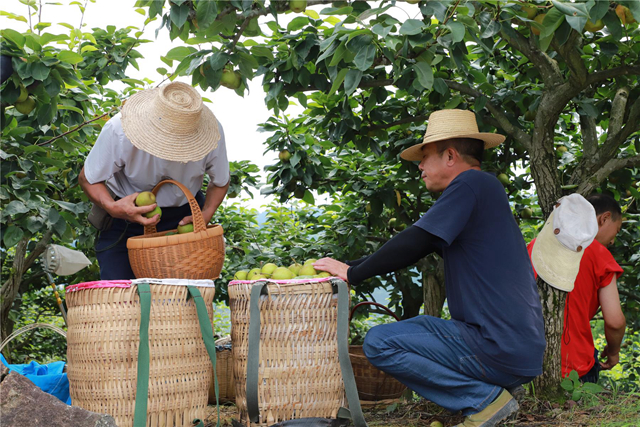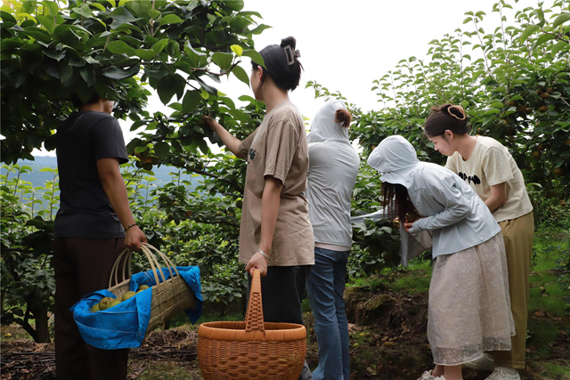 “今年3月梨花開的時候,就聽朋友說這里景色特別美,我們和朋友一起來打卡拍照,留下了很多美好回憶。現在聽說梨子成熟了,我們又專門過來摘,想嘗嘗這新鮮的味道。”游客湛雯君一邊將剛摘的梨子放進籃子,一邊笑著說。