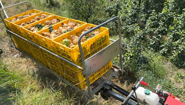 據了解,該基地今年翠冠梨產量預計突破30萬斤,產值可達250萬元。為解決山地運輸瓶頸,基地今年鋪設了總長1000米的軌道,引入無人駕駛單軌運輸車。這一創新舉措,不僅高效解決了豐收季梨子下山和管護期肥料上山的雙重難題,更以智能化手段為山區特色產業發展注入了新動能,有效推動了農業現代化進程。