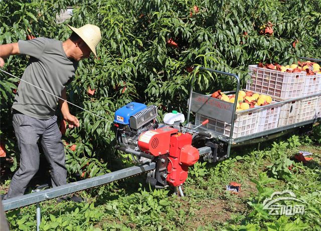 寶坪鎮永高村黃桃種植園負責人胡傳軍說,“原來果園靠人工運輸,一天最多運 2000 多斤,不僅費時費力,運輸中果子還容易擠壓損壞。現在用上單軌‘小火車’,一天能運 4000 斤,輕柔轉運能避免果皮損傷,效率大大提升。”
