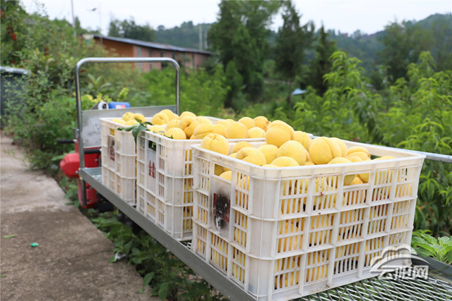 云陽網訊(記者 陳慧 王維立)眼下,寶坪鎮永高村黃桃種植園的 250 畝黃桃進入豐收季。與往年不同的是,果園里穿梭的“山地小火車”—— 單軌運輸車成了摘桃運果的主力,成功破解了山高坡陡的運輸難題,讓黃桃徹底告別傳統人工“肩挑背扛”的歷史。