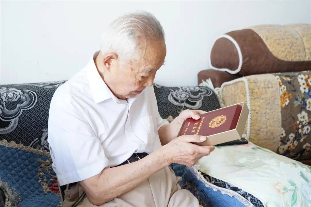 為他送上“中國人民抗日戰爭勝利80周年”紀念章